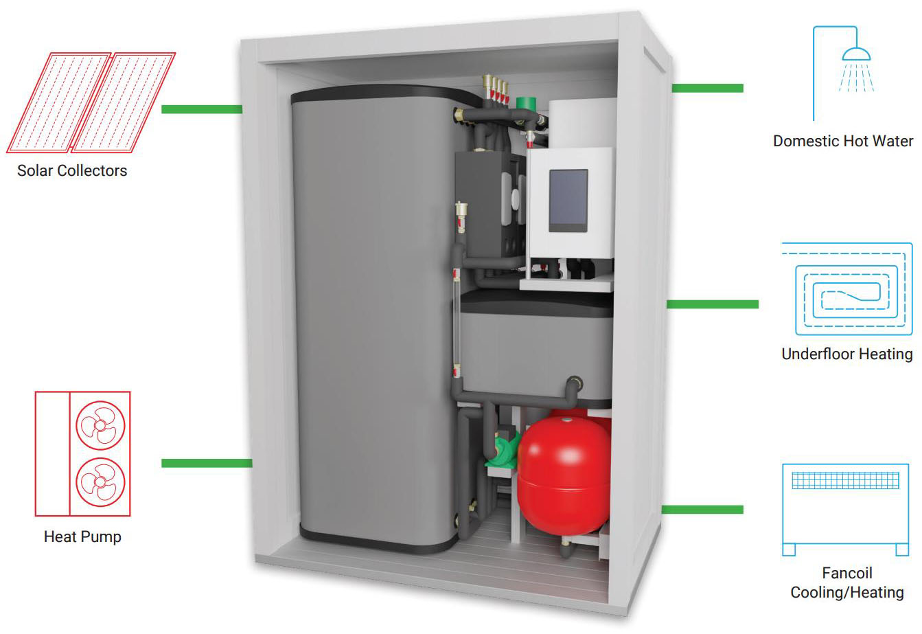 The Solarico Plug-in Hybrid Station is a compact and intelligent system that provides heating, cooling and hygienic hot water, combining renewable energy and advanced hydraulic integration in a single station solution.